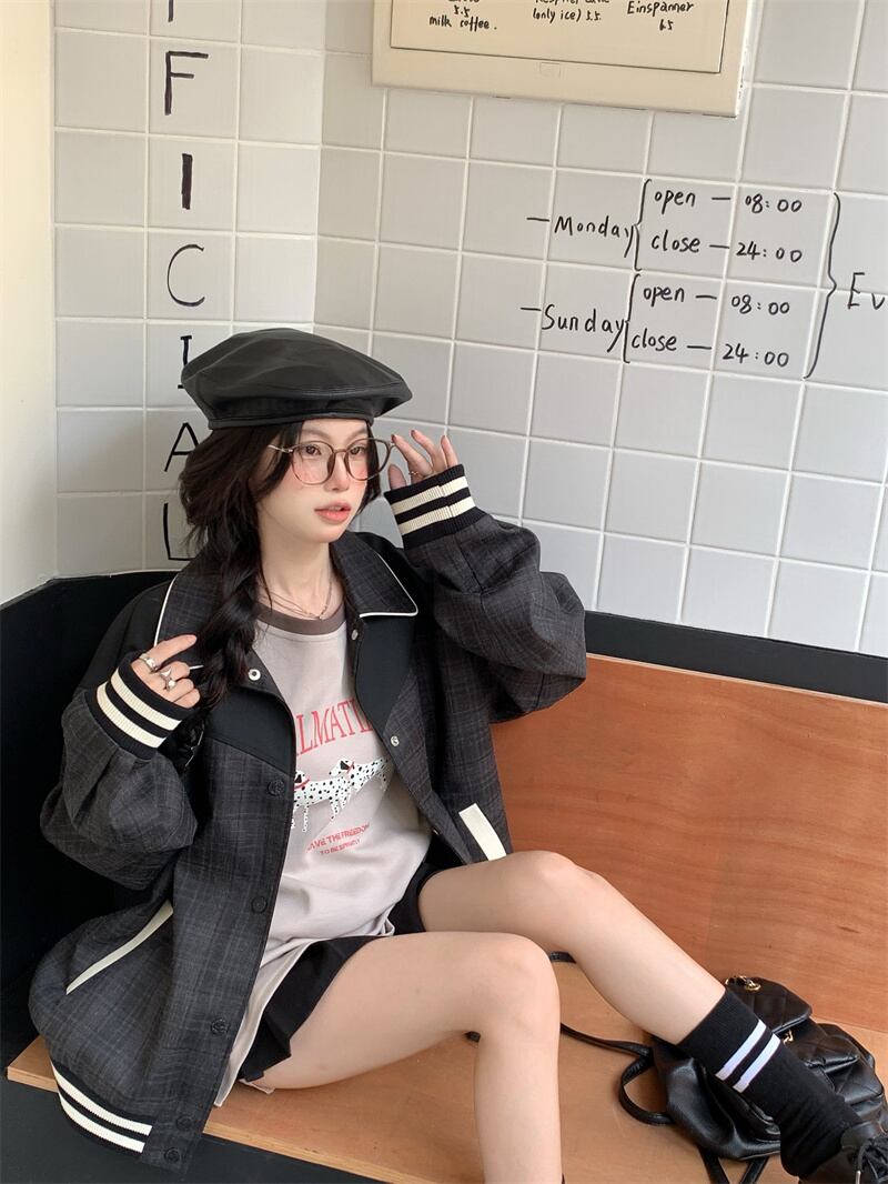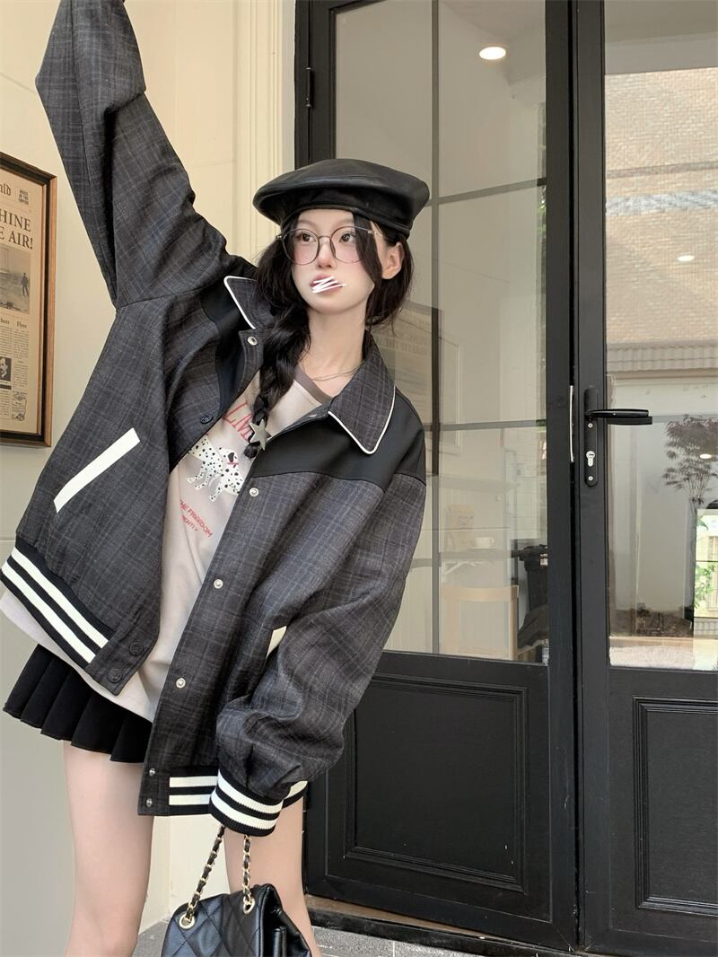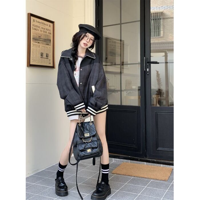 格子柄ジャケット オータムカーディガン 秋物 ステッチ 10/5 秋冬 オータム ウインター ナチュラル mi4664462984947