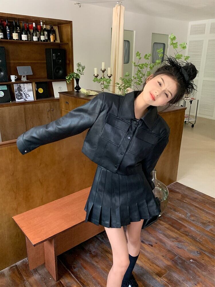 オータムレザージャケット プリーツスカート セット 秋物 10/5 秋冬 オータム ウインター ナチュラル mi4667299600072