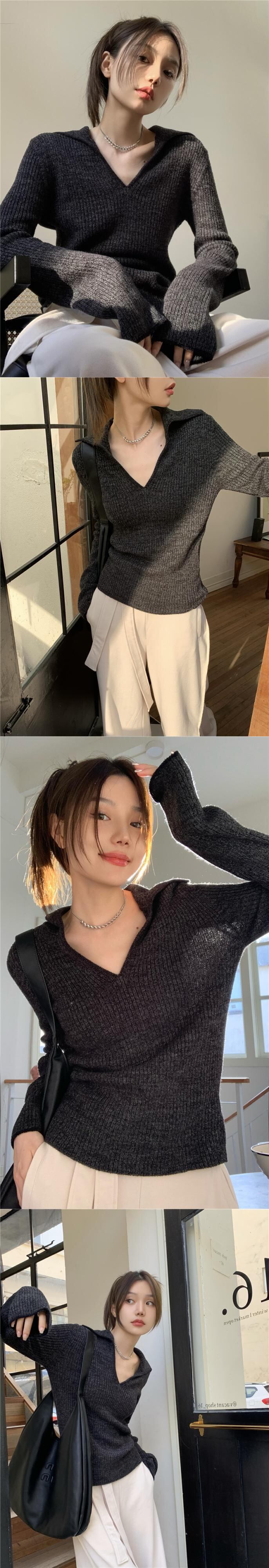スリムフィットショートニットセーター オータムプルオーバー トップス ロング 秋物 10/5 秋冬 オータム ウインター ナチュラル mi4613103117853