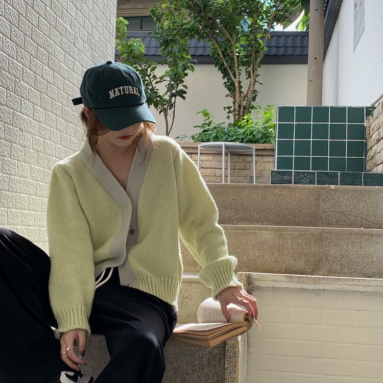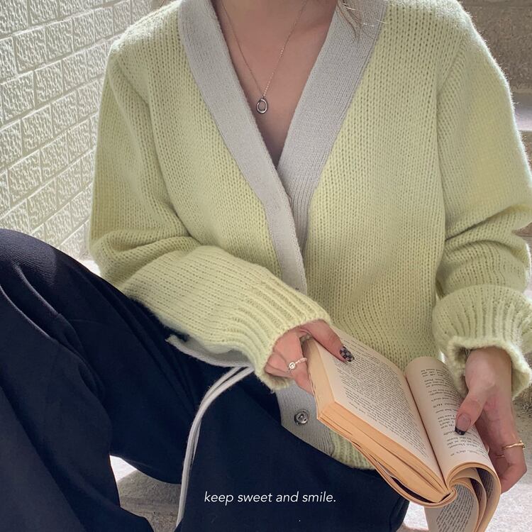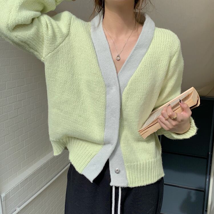 カジュアルカラーVネックセーター ジャケット オータムルーズニットトップス 秋物 10/5 秋冬 オータム ウインター ナチュラル mi4697117889581