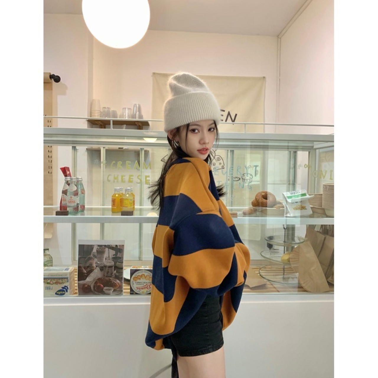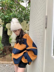 色:オレンジブルーのストライプのセーター