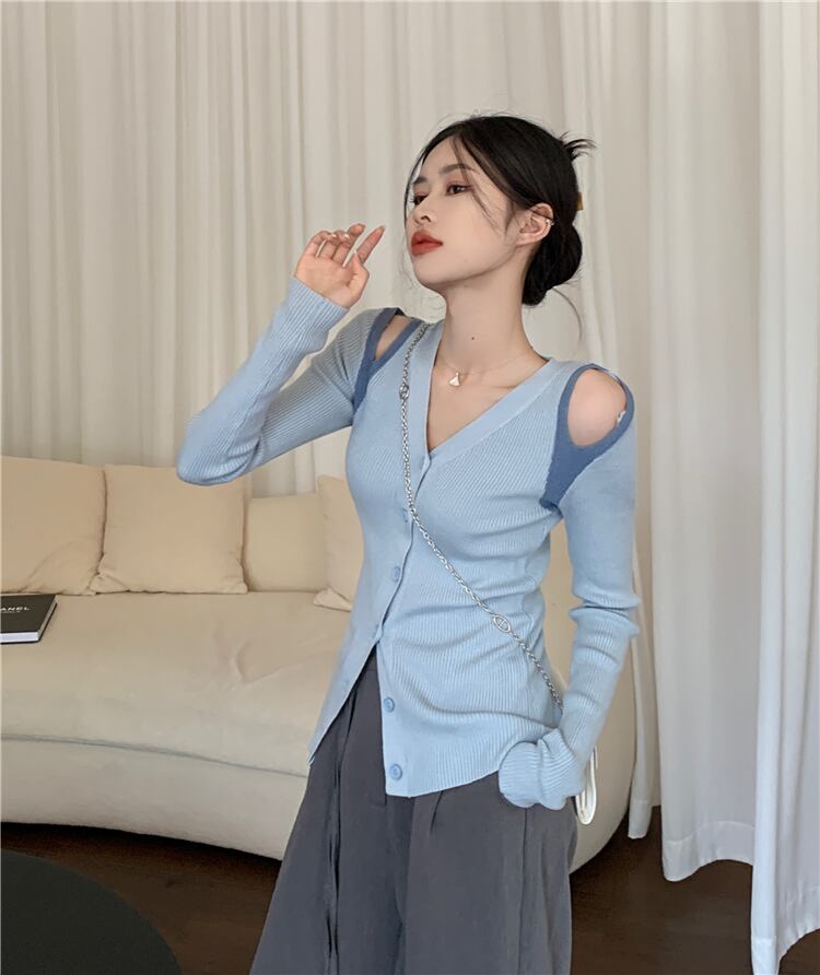 ヴィンテージVネックニットカーディガンオータムスリムフィットセーター 秋物 ビンテージ 10/5 秋冬 オータム ウインター ナチュラル mi4675687412081
