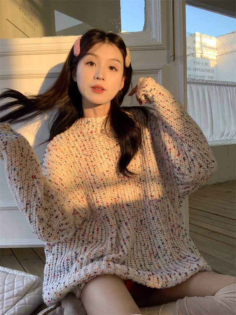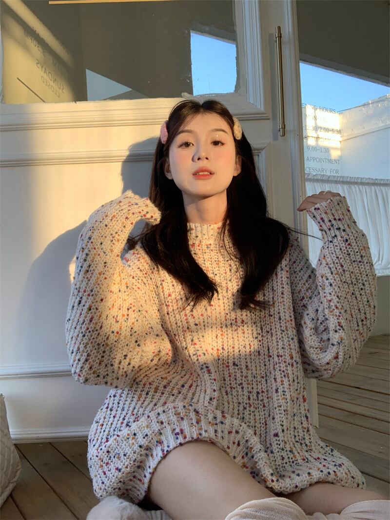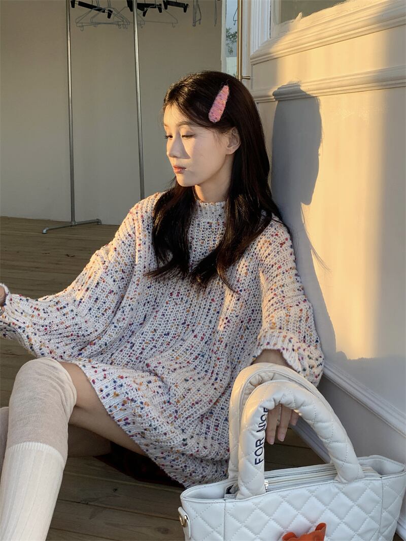 ルーズ長袖スリーブプルオーバー セーター ニットトップス ロング 10/5 秋冬 オータム ウインター ナチュラル mi4620112484722