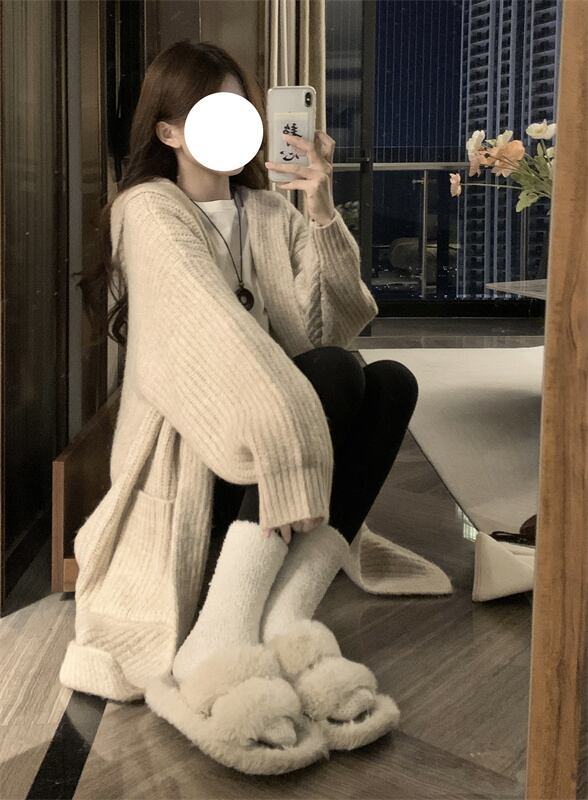 スタイルフードセーター コート オータムウィンターアウターニットカーディガンルーズトップス 秋物 冬物 10/5 秋冬 オータム ウインター ナチュラル mi4642946764891