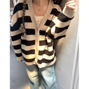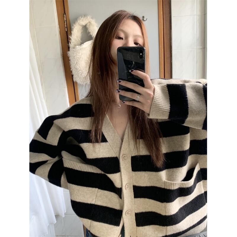 スタンダードストライプセーター ジャケット オータムスタイルルーズニットカーディガン ロング レトロ 秋物 10/5 秋冬 オータム ウインター ナチュラル mi4690630547753