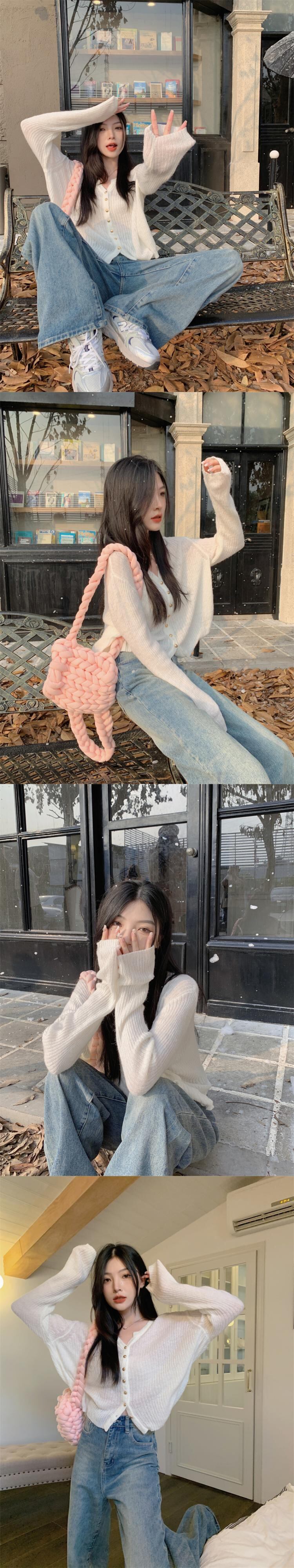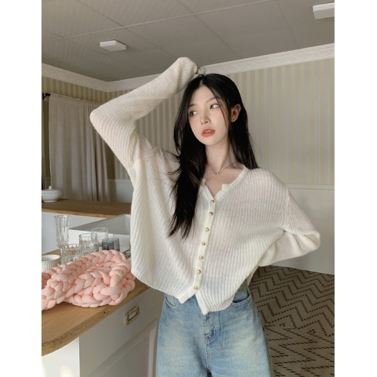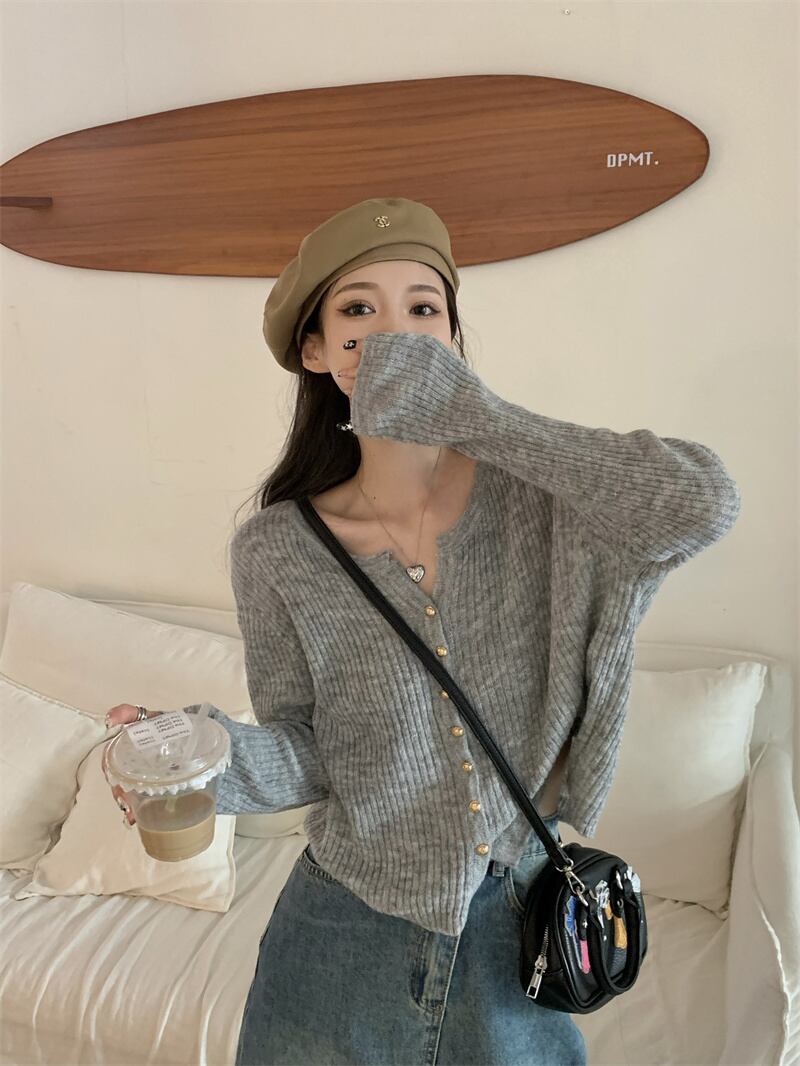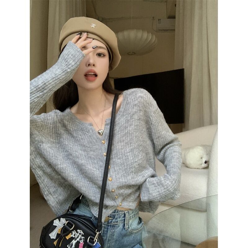 グレーVネックセーター オータムスタンダードルーズショートトップス ロング レトロ 秋物 10/5 秋冬 オータム ウインター ナチュラル mi4651322214149