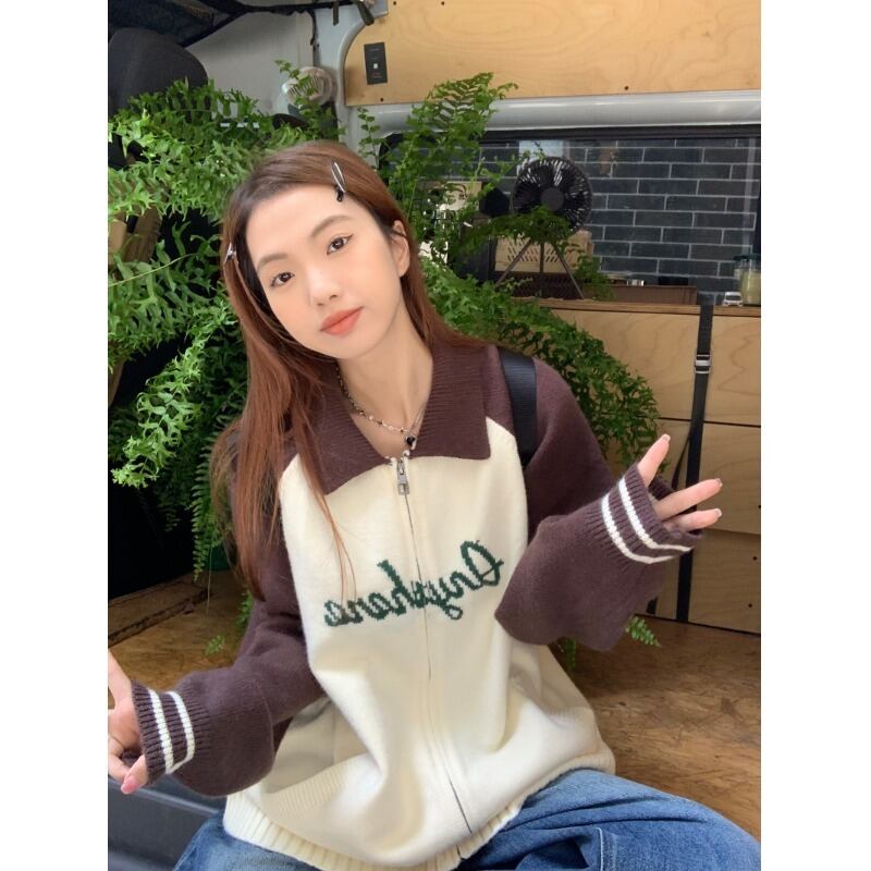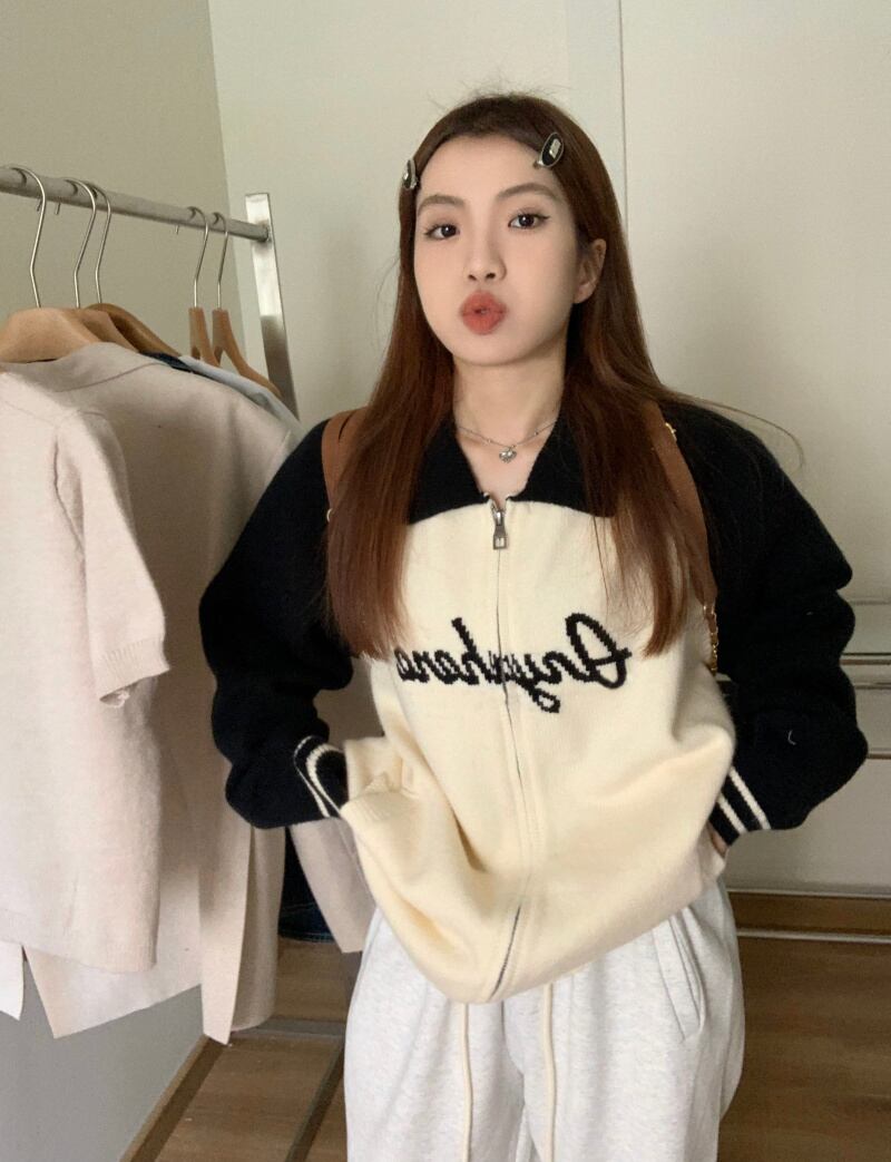 スタンダードジッパーセーター ジャケット オータムウィンタースタイルニットカーディガントップス レトロ 秋物 冬物 10/5 秋冬 オータム ウインター ナチュラル mi4633959233509