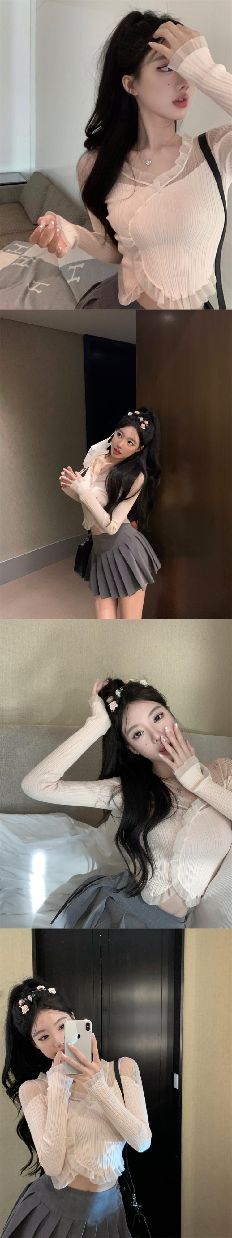 ニットセーター オータム薄手スリムフィットショートトップス ロング 秋物 10/5 秋冬 オータム ウインター ナチュラル mi4621928860891