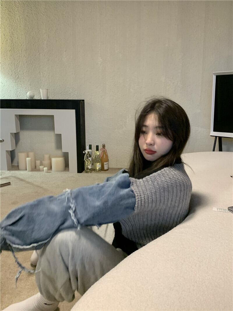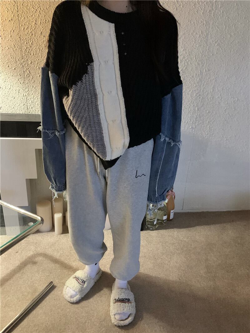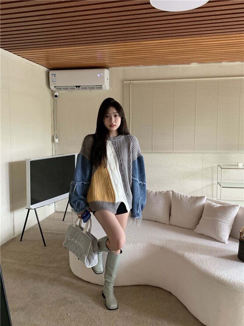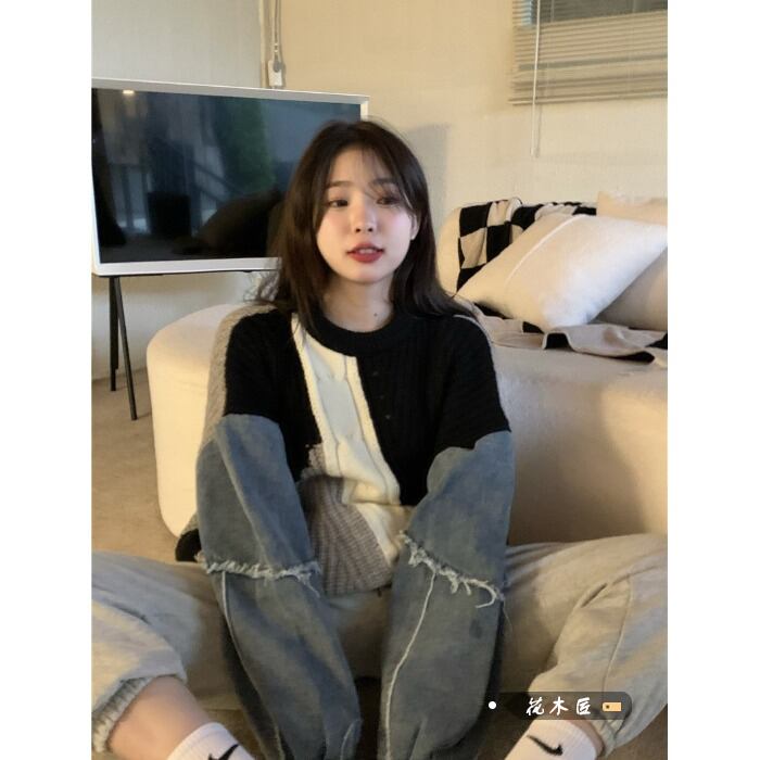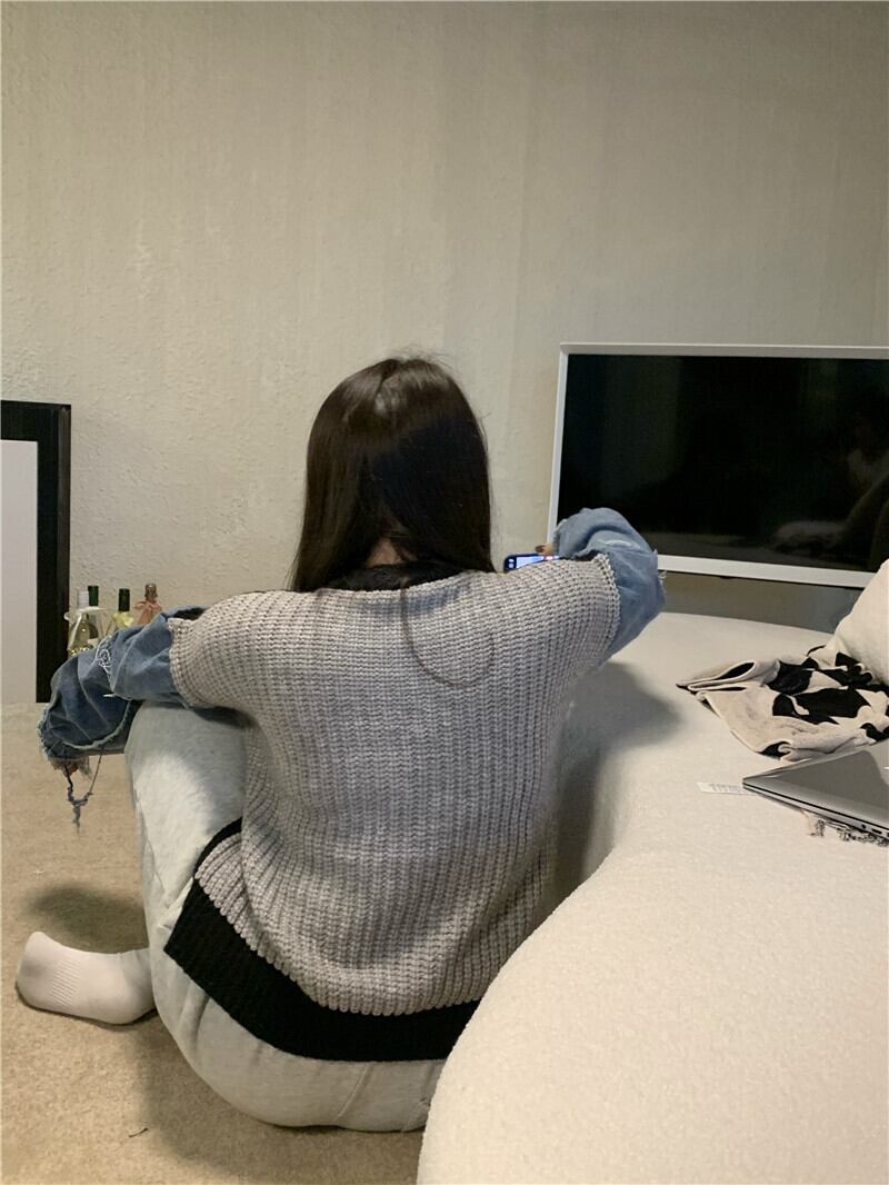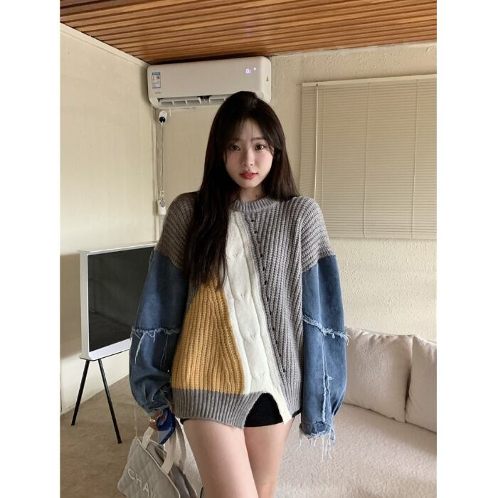 カラーニットセーター オータムスタイルルーズトップス 大人ガーリー スウィート キュート カジュアル 秋物 ステッチ 10/5 秋冬 オータム ウインター ナチュラル mi4650553054131