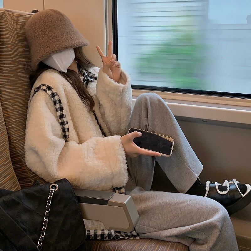 オータムウール格子柄コート ルーズセット 秋物 10/5 秋冬 オータム ウインター ナチュラル mi4639798776200