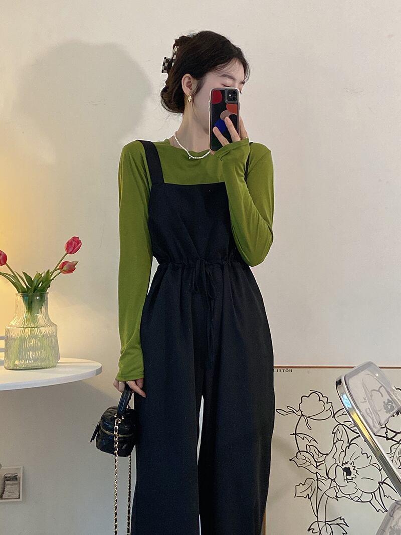 ブラックオーバーオール オータムレースウェストジャンプスーツ オールインワン 秋物 10/5 秋冬 オータム ウインター ナチュラル mi4691248630363