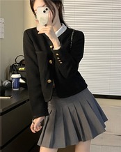 スタンダードブラックショートカーディガンジャケット オータムトップス レトロ 秋物 10/5 秋冬 オータム ウインター ナチュラル mi4658701899565