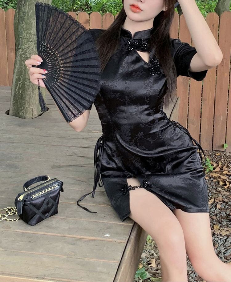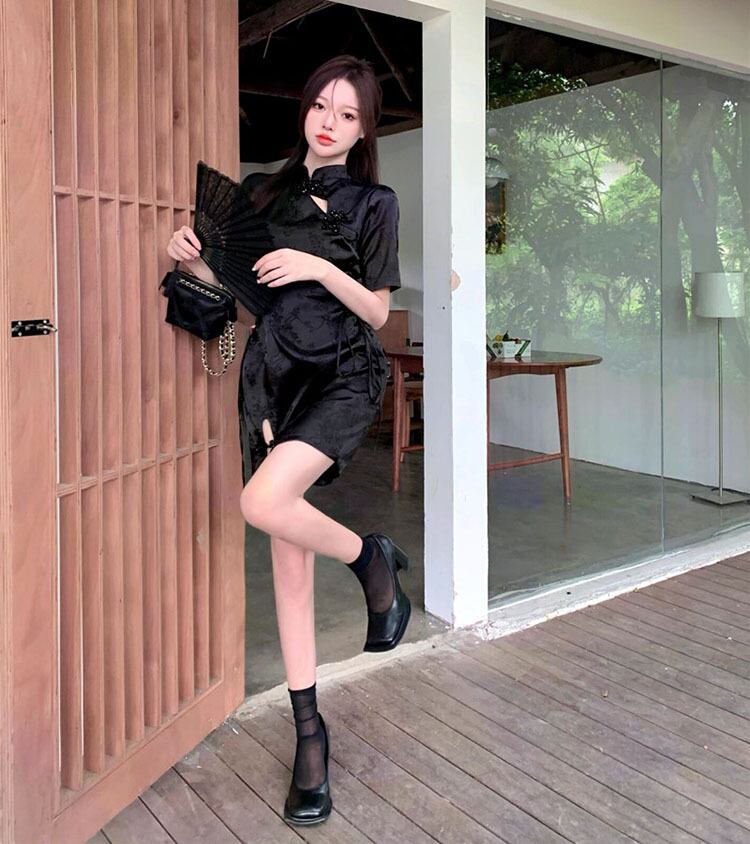 スタンダードプリントドレス サマースタイルバンドウェストスリットスカート レトロ 夏物 10/5 秋冬 オータム ウインター ナチュラル mi4678115430420
