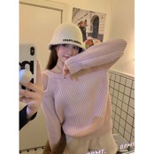 色:アプリコットオフショルダーセーター,ピンクオフショルダーセーター,グレーブルーのショルダーセーター