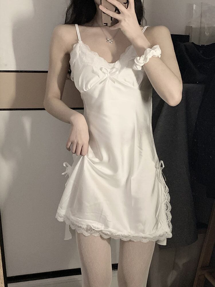 レースホワイトサマーリボンショートスカート 夏物 10/5 秋冬 オータム ウインター ナチュラル mi4632666089512