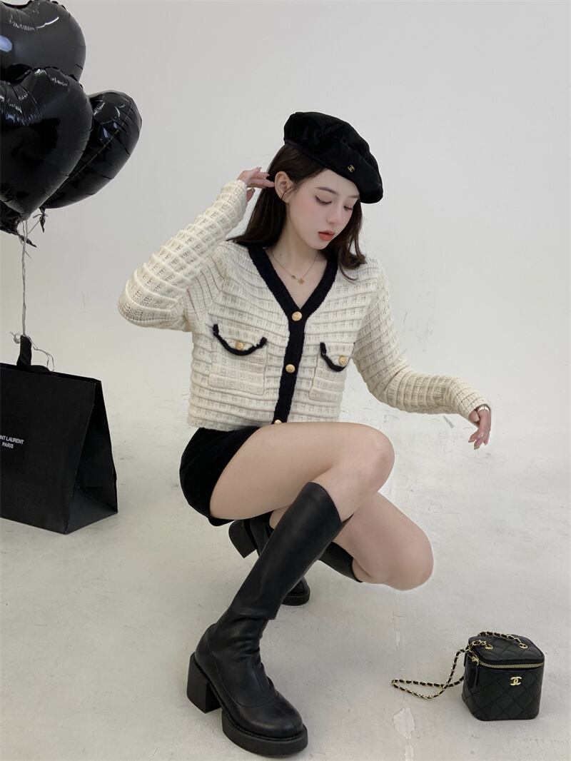 スタイルカラーVネックメタルボタンセーター オータムショートニット 秋物 10/5 秋冬 オータム ウインター ナチュラル mi4680859870824