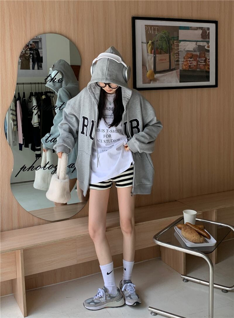 刺繍ジッパーフードセーター オータムルーズカーディガントップス 秋物 10/5 秋冬 オータム ウインター ナチュラル mi4662773338059