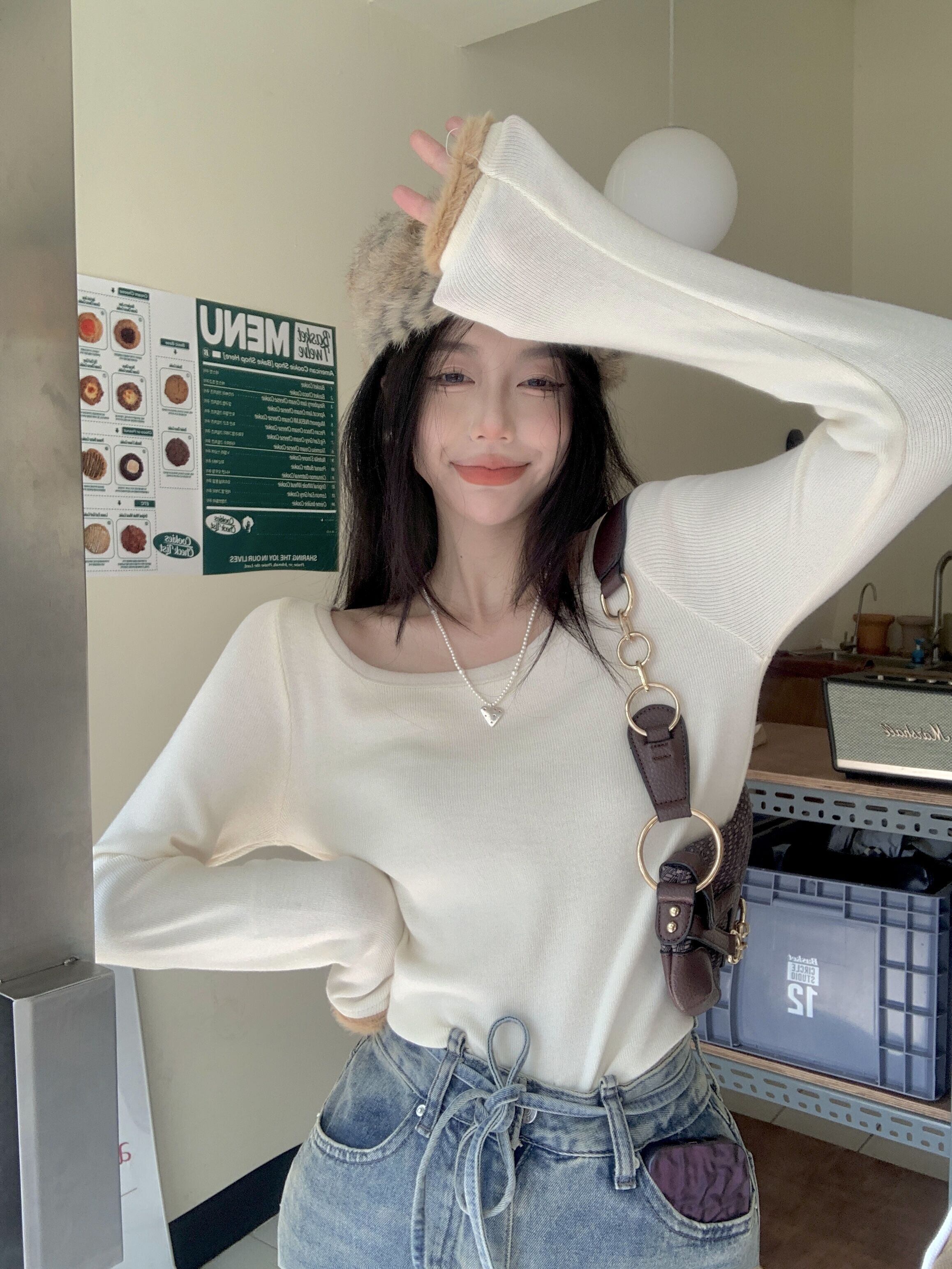 カラーセーター オータムスリムフィット薄手ストレッチショートトップス ロング エラスティック 伸縮 秋物 10/5 秋冬 オータム ウインター ナチュラル mi4639232809398