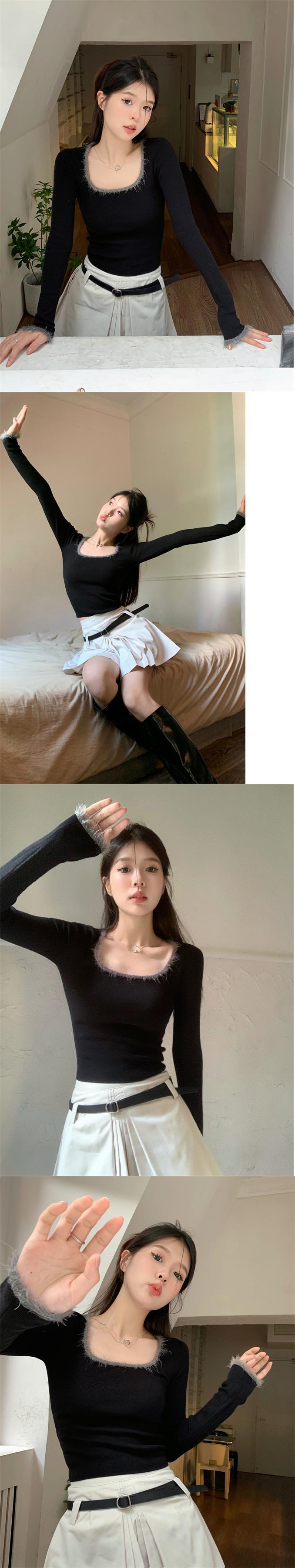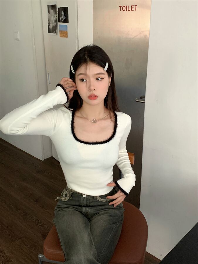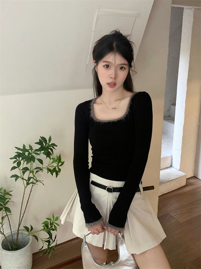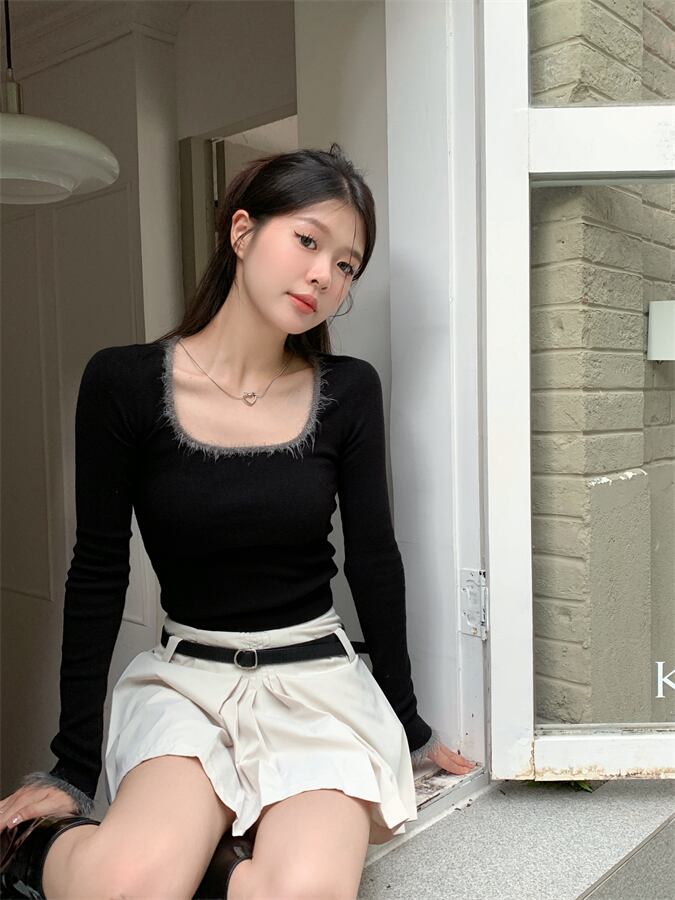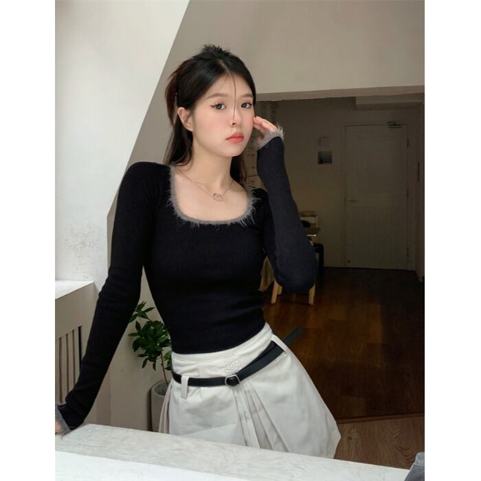 ニットセーター オータムシャツ スリムショートトップス ロング 秋物 ピュア ステッチ 10/5 秋冬 オータム ウインター ナチュラル mi4688903412044
