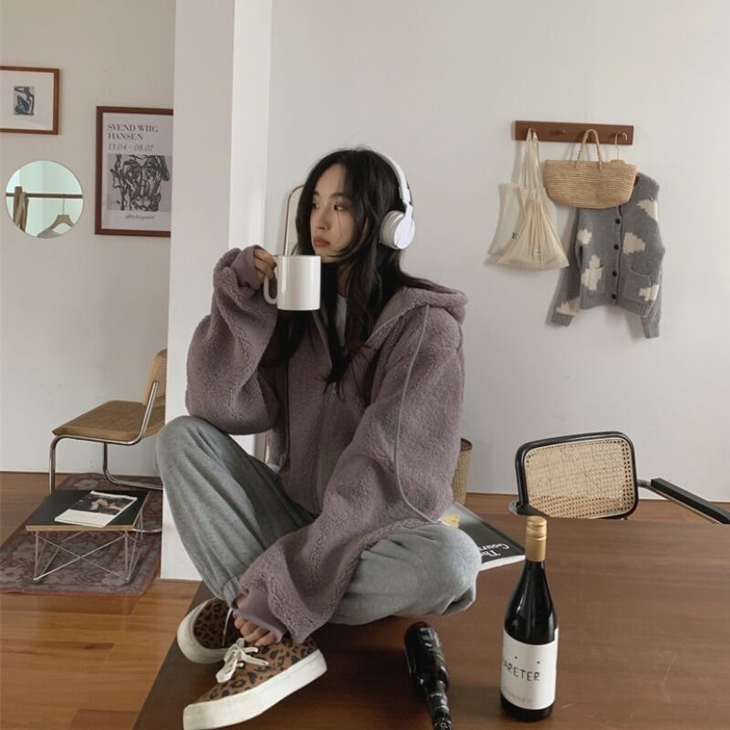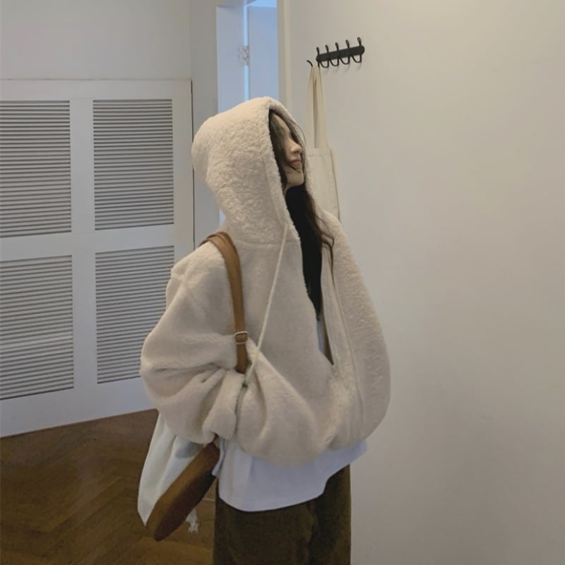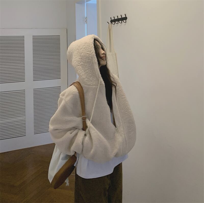 ルーズウールジッパーフードジャケット オータムウィンターカーディガントップス 秋物 冬物 10/5 秋冬 オータム ウインター ナチュラル mi4693940824530