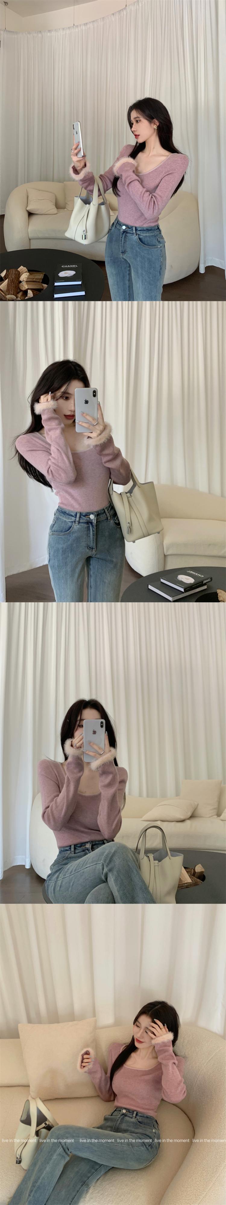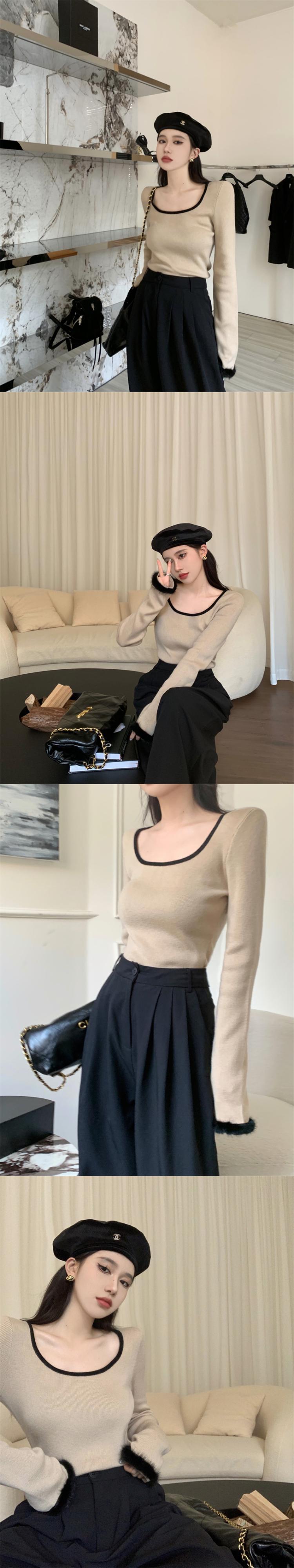 スタンダードスリムセーター オータム薄手シャツ トップス レトロ 秋物 ステッチ 10/5 秋冬 オータム ウインター ナチュラル mi4695360552704