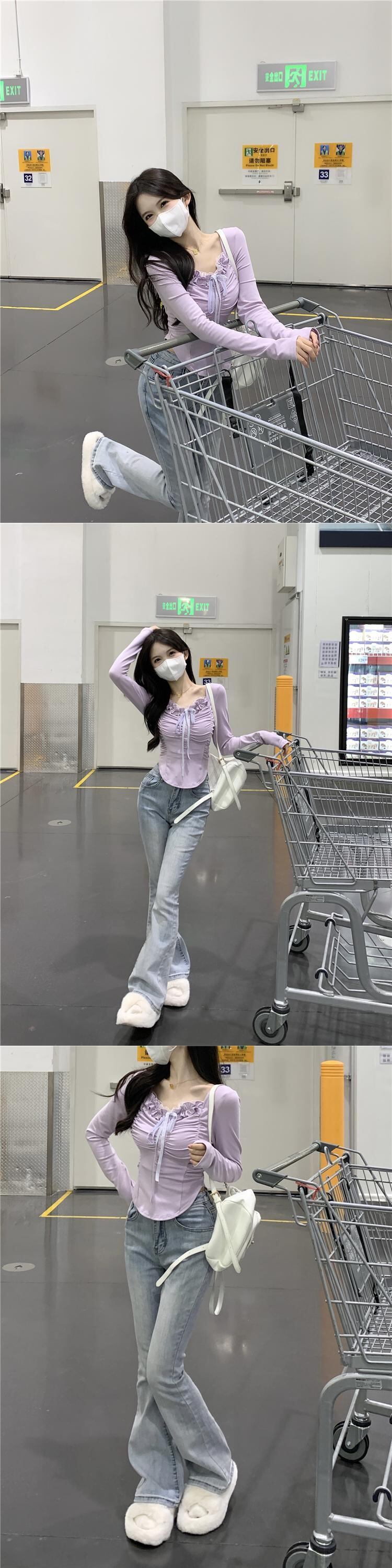 Tシャツ オータムショートスリムトップス ロング 秋物 ステッチ 10/5 秋冬 オータム ウインター ナチュラル mi4662135497403