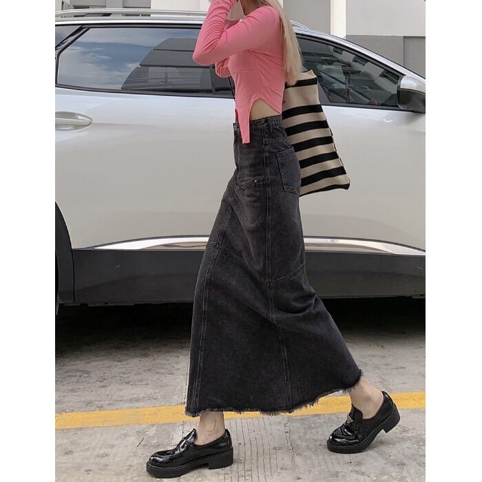 スタンダードスカート オータムハイウェストスリム レトロ 秋物 10/5 秋冬 オータム ウインター ナチュラル mi4613967397551