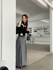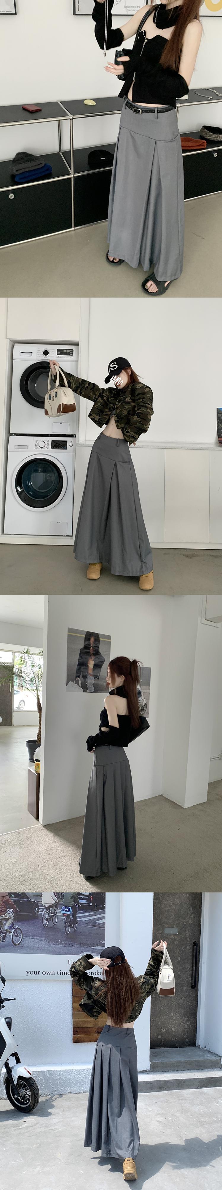 オータムグレーハイウェストウェストスカート スタンダードルーズ薄手プリーツAライン レトロ 秋物 10/5 秋冬 オータム ウインター ナチュラル mi4682560550846