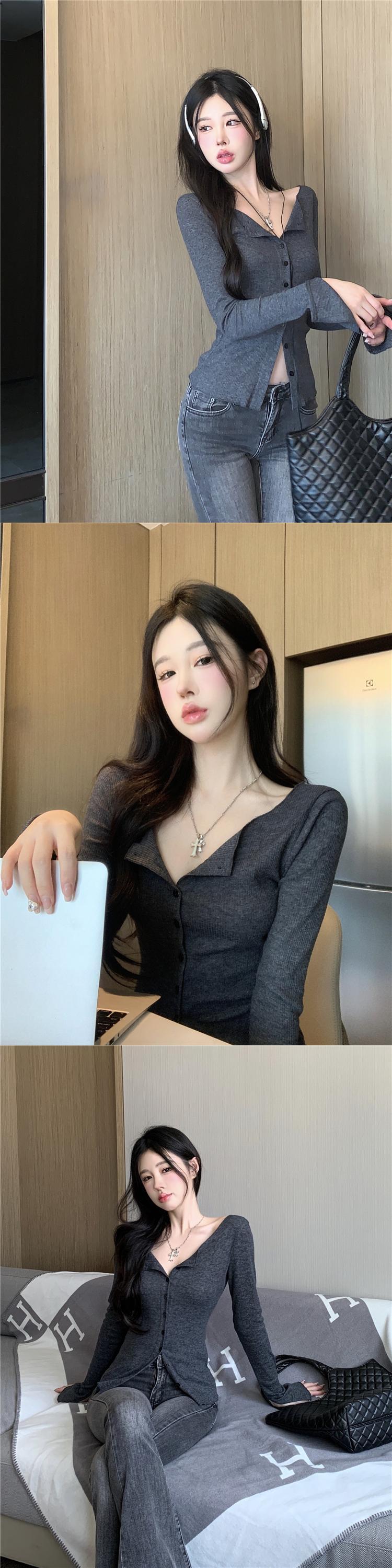 スタイルスリムフィット長袖スリーブニットカーディガンオータムスタンダードシャツ ロング レトロ 秋物 10/5 秋冬 オータム ウインター ナチュラル mi4639199331962