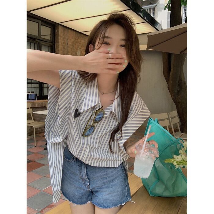 スタンダードストライプシャツ サマールーズトップス レトロ 夏物 10/5 秋冬 オータム ウインター ナチュラル mi4697112983941