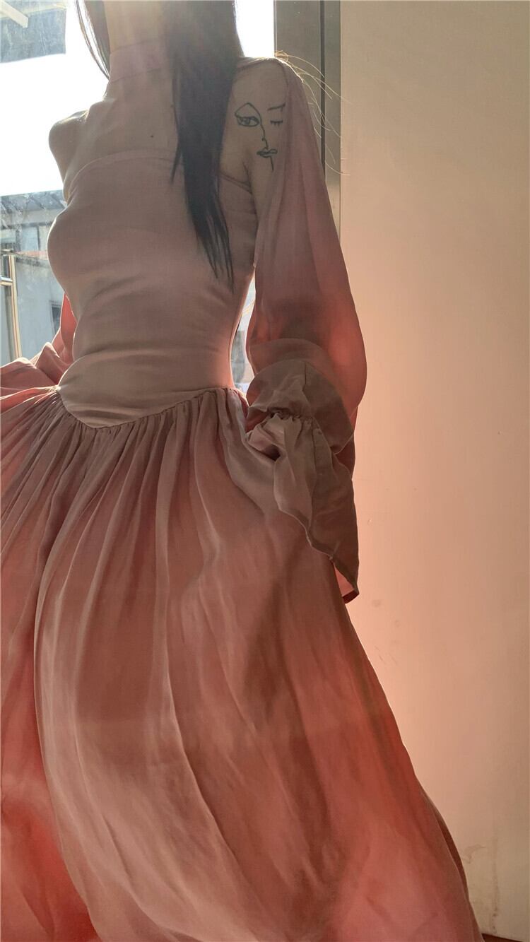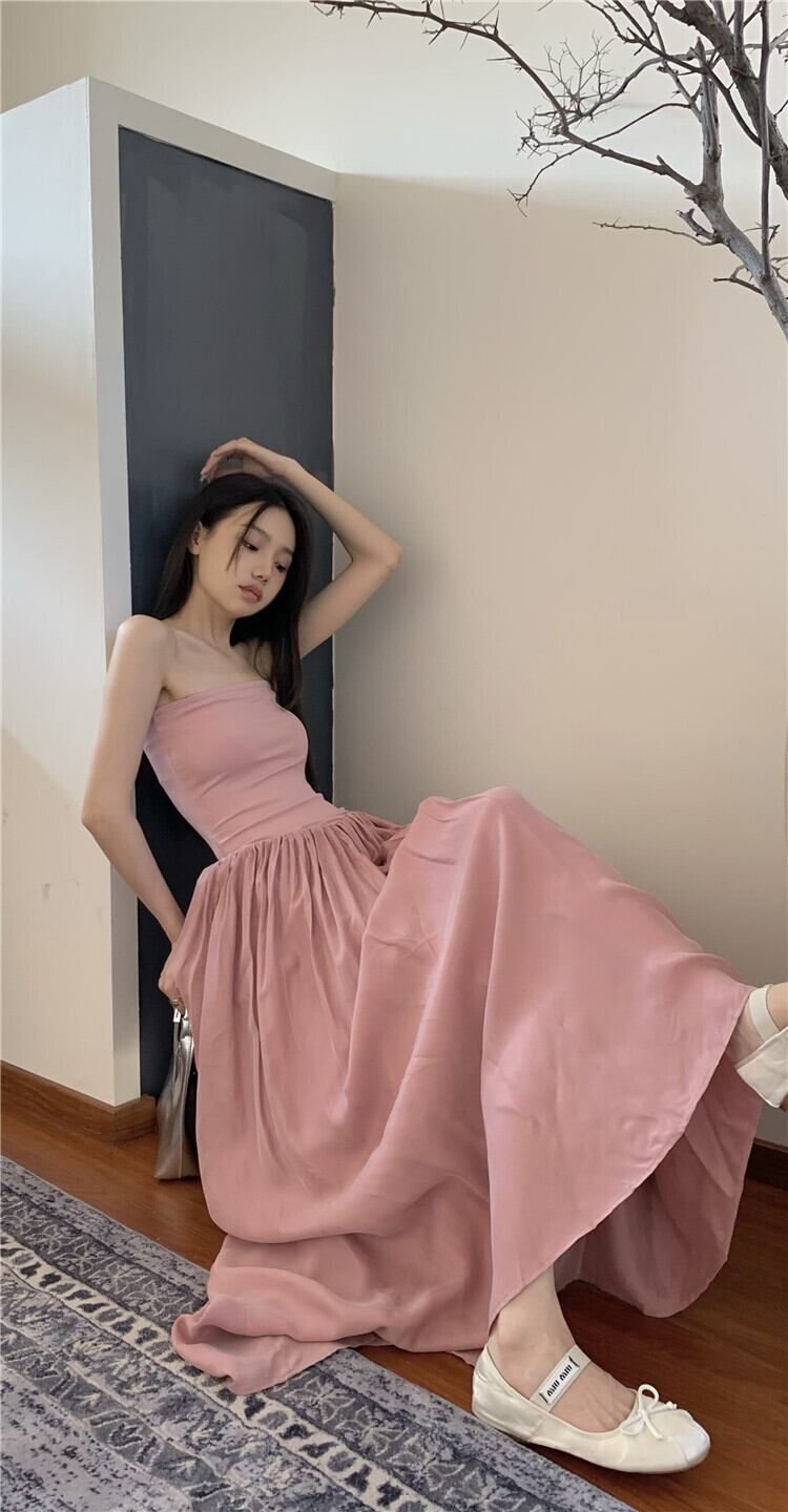 スカート ドレス オータムウィンタースタイルウェストスタンダードロング ピンク レトロ 秋物 冬物 10/5 秋冬 オータム ウインター ナチュラル mi464368907024