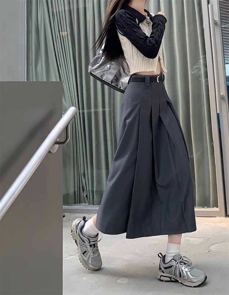 グレースカート オータムハイウェストスリムAラインプリーツ 秋物 10/5 秋冬 オータム ウインター ナチュラル mi4642362094330