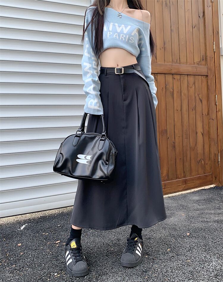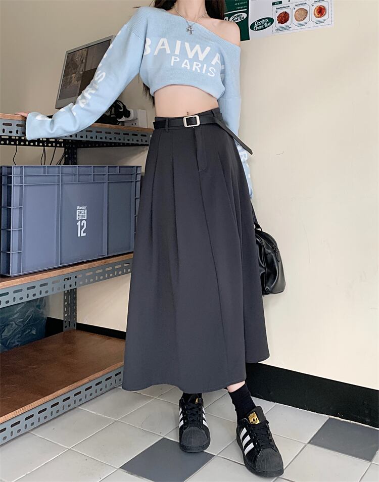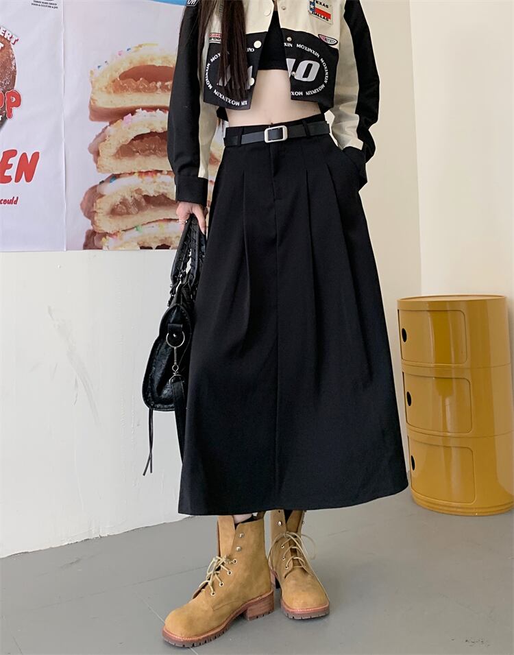 ブラックプリーツスカート オータムハイウェストスリムスタンダードルーズAライン レトロ 秋物 10/5 秋冬 オータム ウインター ナチュラル mi4634957798164