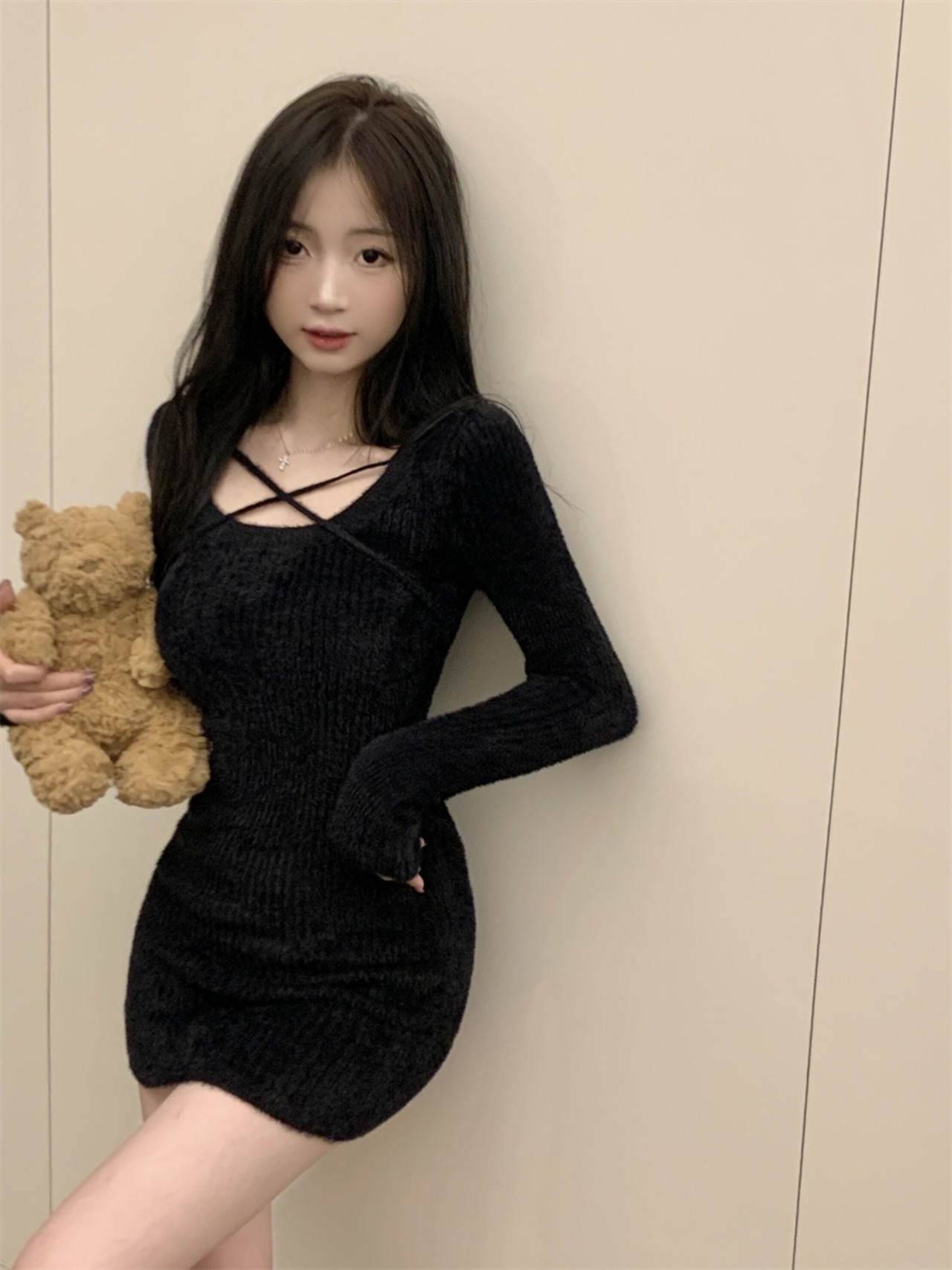 クロスニットドレス オータムスリムスカート 秋物 10/5 秋冬 オータム ウインター ナチュラル mi466830380168