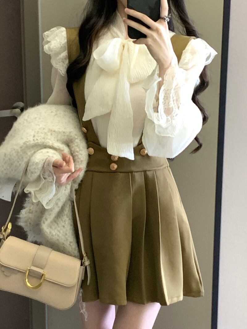 オータムレースシャツ プリーツスカート 秋物 10/5 秋冬 オータム ウインター ナチュラル mi4663492122852