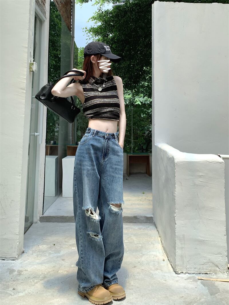 ジーンズ オータムスタンダードハイウェストウェストスリムワイドレッグルーズパンツ レトロ 秋物 ワイドパンツ 10/5 秋冬 オータム ウインター ナチュラル mi4674064744352