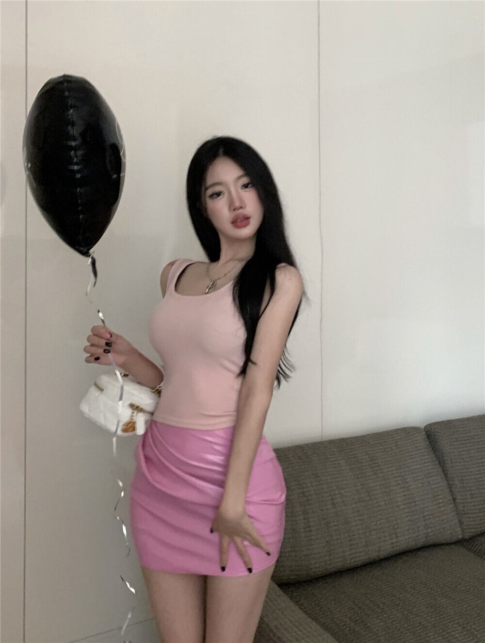 サマーハイウェストウェストショートレザースカート セット ピンク 夏物 10/5 秋冬 オータム ウインター ナチュラル mi4663102893512