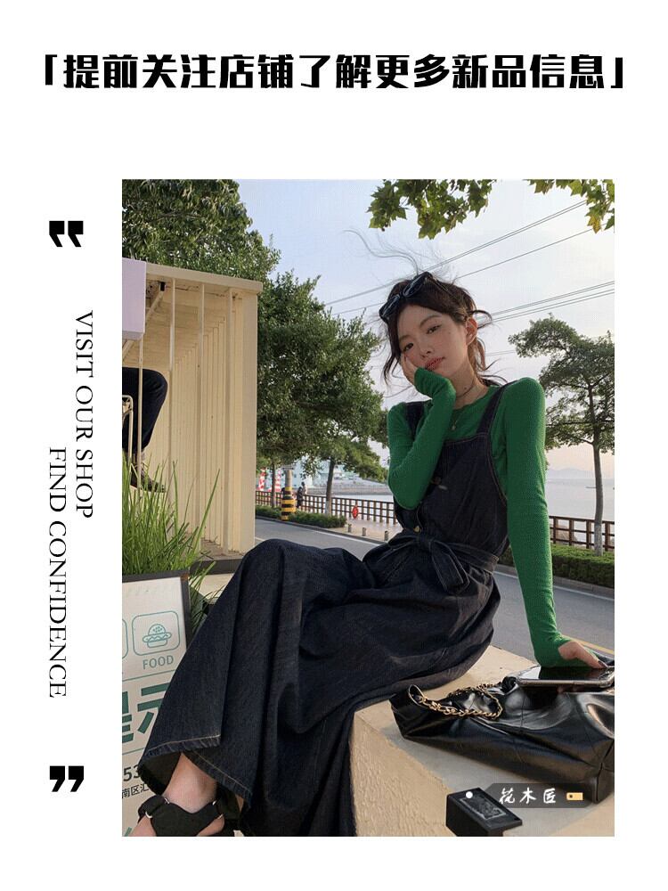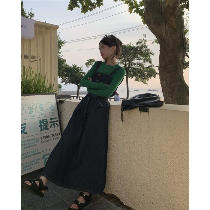 色:グリーンニットTシャツ,ブレストサスペンダースカート