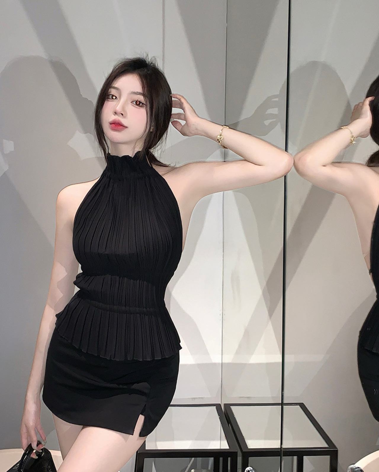 バックレスブラックホルターサマートップス 夏物 10/5 秋冬 オータム ウインター ナチュラル mi4636549550330