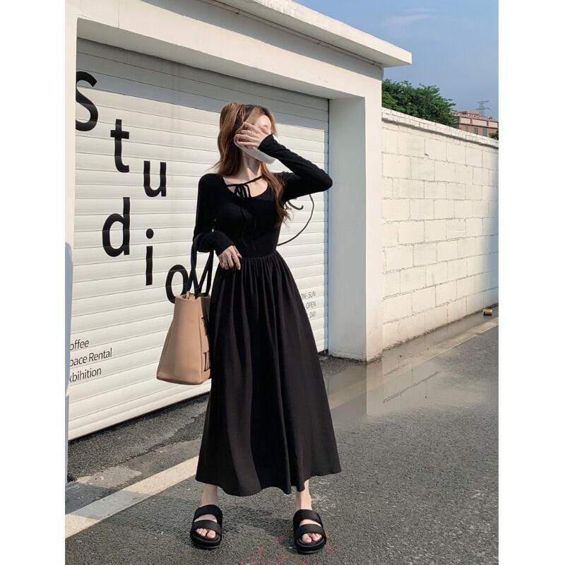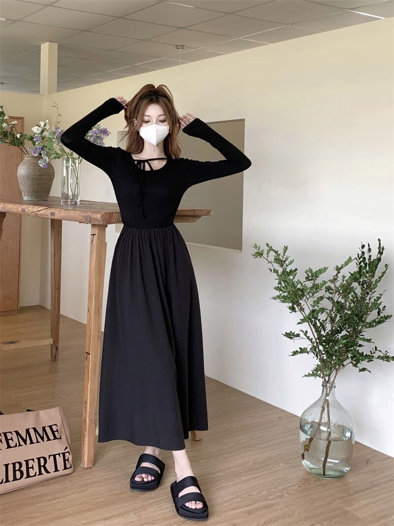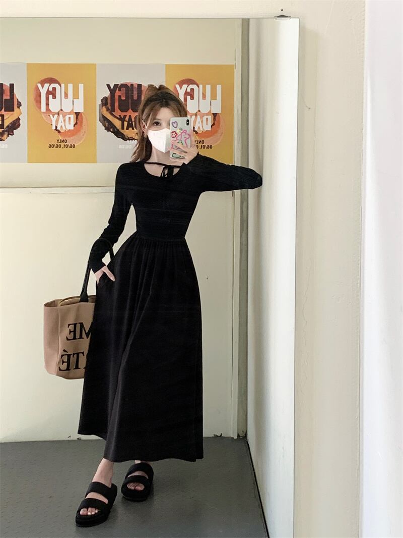 ブラックロングドレス オータムウェスト薄手スカート 秋物 10/5 秋冬 オータム ウインター ナチュラル mi4678194320472