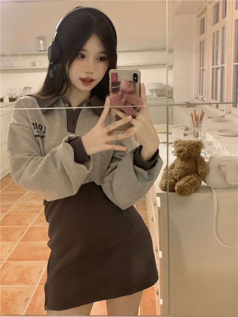 スタンダードセーター ドレス オータムウェストスカート レッド レトロ 刺繍 秋物 10/5 秋冬 オータム ウインター ナチュラル mi4611399170102