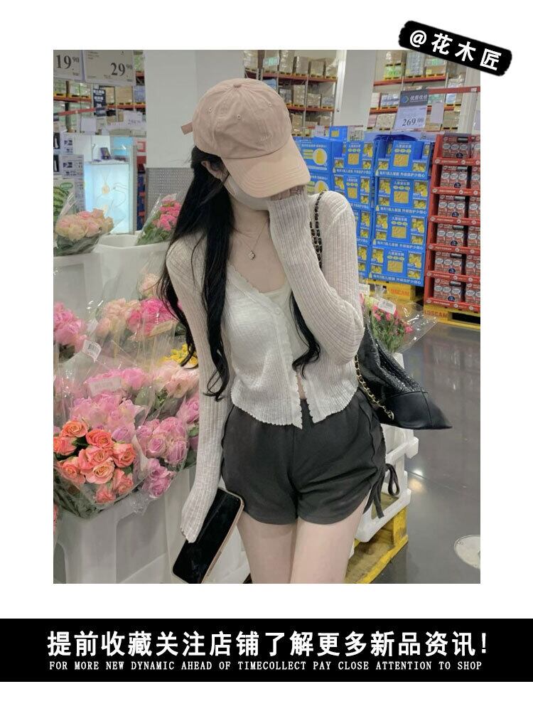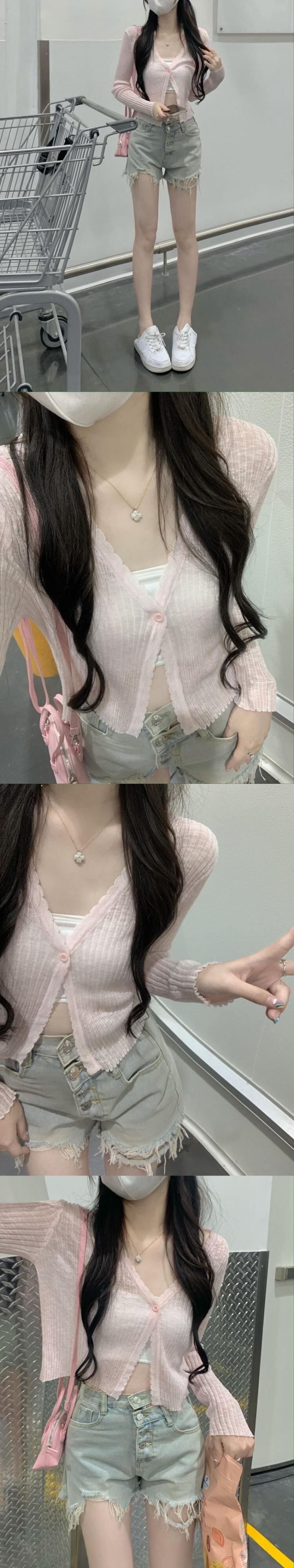 ホワイト薄手ニットカーディガンオータムVネックスリムフィットショートトップス ロング 秋物 10/5 秋冬 オータム ウインター ナチュラル mi4650930367038