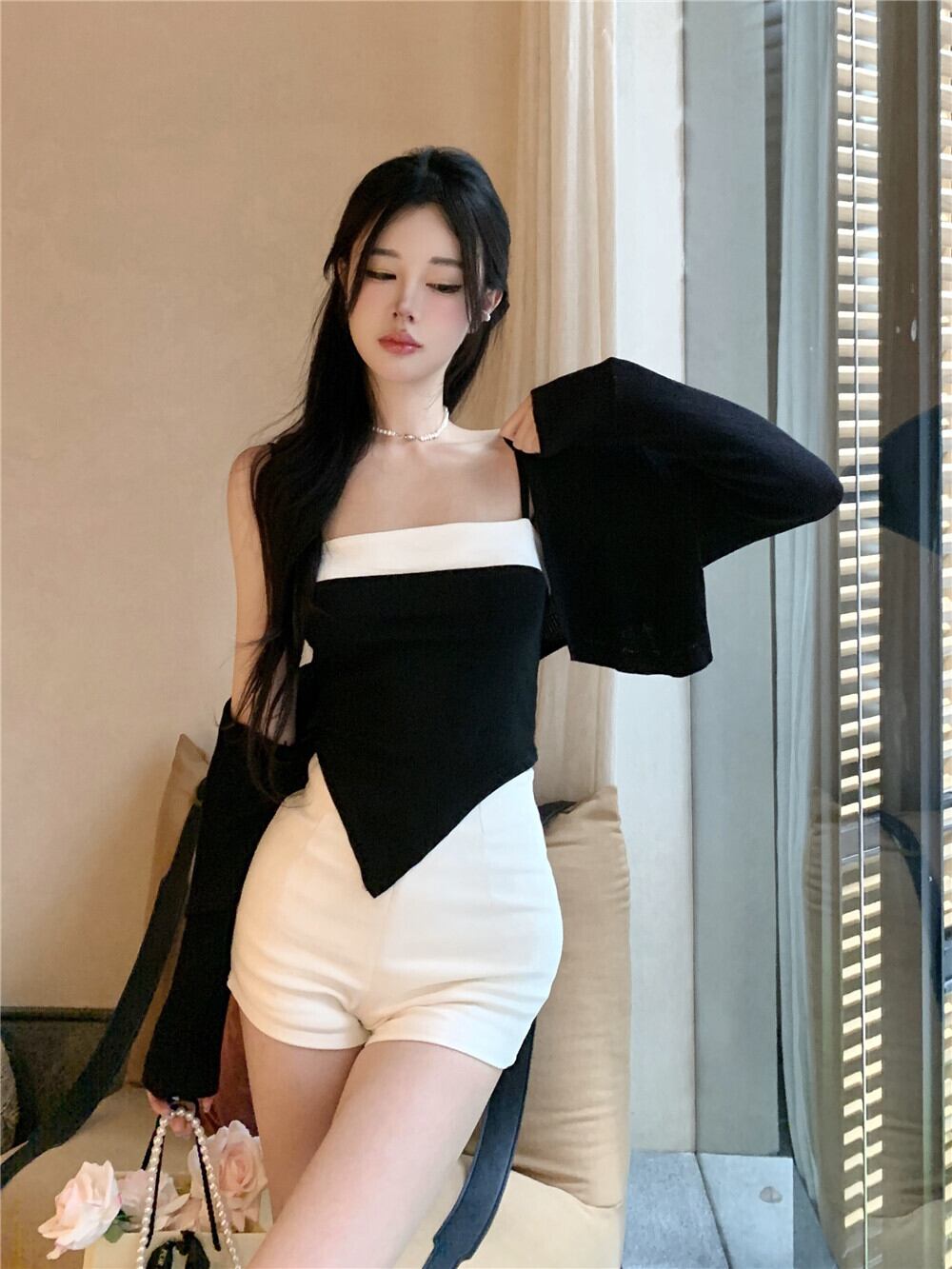 カラーサマーショートスリムフィットトップス 夏物 10/5 秋冬 オータム ウインター ナチュラル mi4678015473279