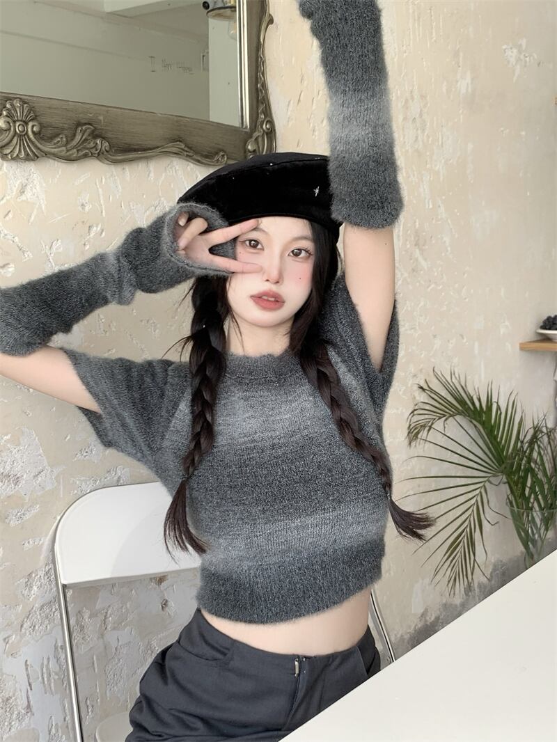 ニットセーター オータムスリーブショートトップス 大人ガーリー スウィート キュート カジュアル 秋物 10/5 秋冬 オータム ウインター ナチュラル mi4614643613576