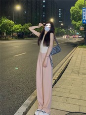 パンツ ルーズサマーハイウェストウェストスリムカジュアル ピンク 夏物 10/5 秋冬 オータム ウインター ナチュラル mi4631351957104
