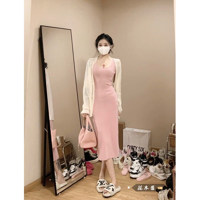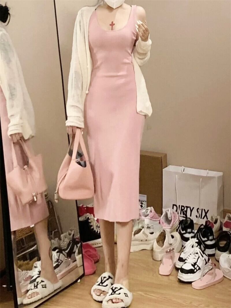 スリムニットドレス オータムスカート ピンク 秋物 10/5 秋冬 オータム ウインター ナチュラル mi4637648550648