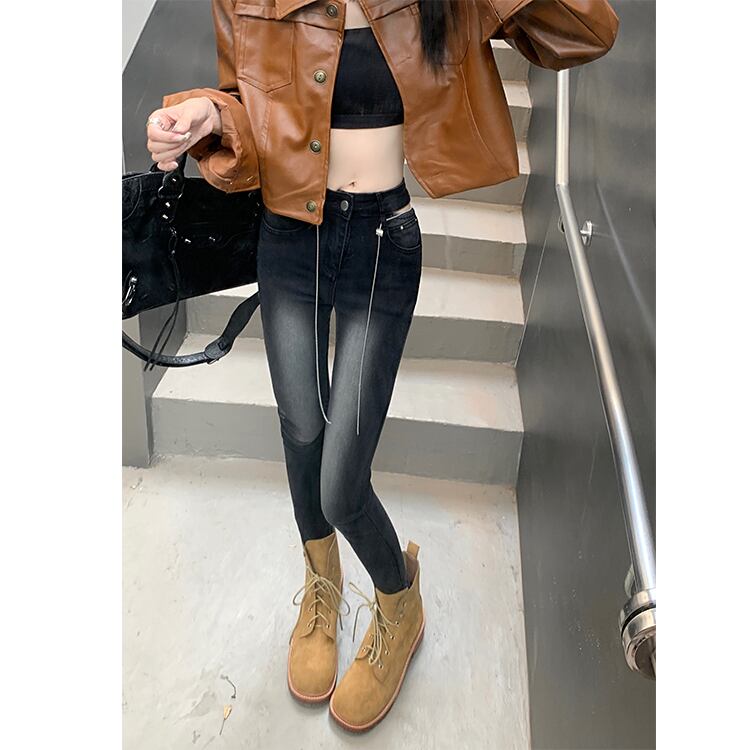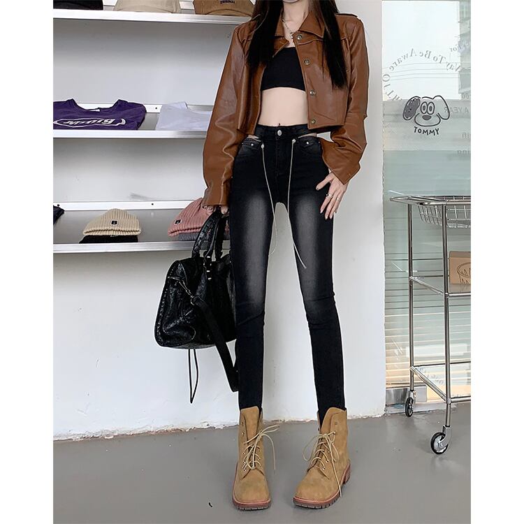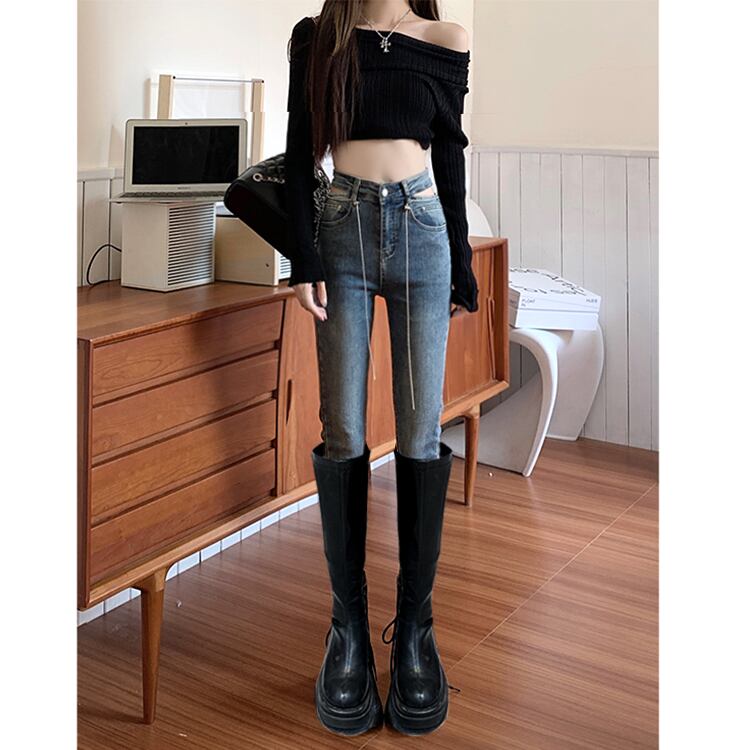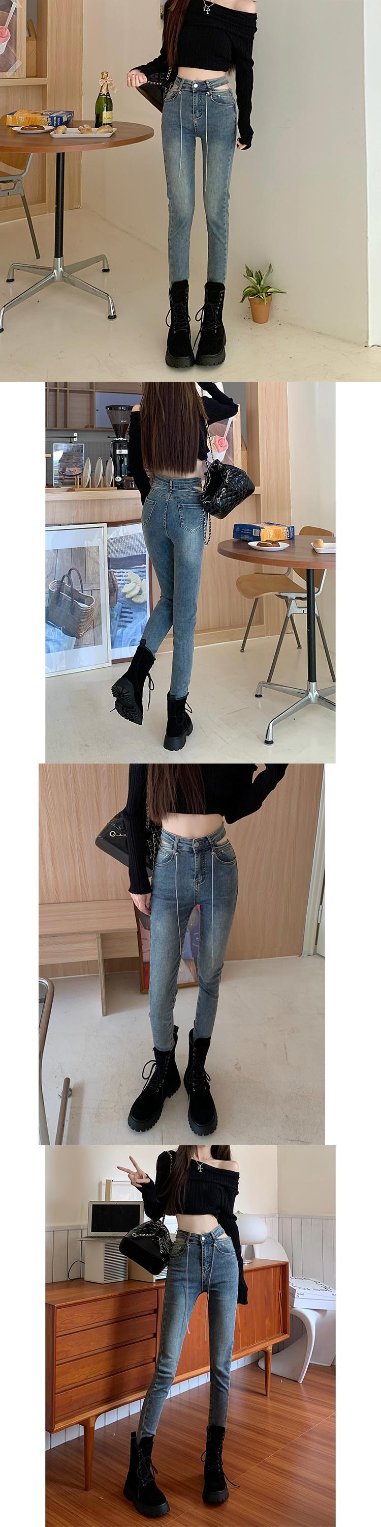 ハイウェストウェストジーンズ オータムスリムスキニーパンツ ロング 秋物 10/5 秋冬 オータム ウインター ナチュラル mi4696254039473