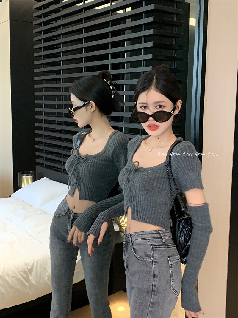 ホルターストラップ セーター オータムショートスリムトップス 秋物 スクウェア 10/5 秋冬 オータム ウインター ナチュラル mi4673758830331