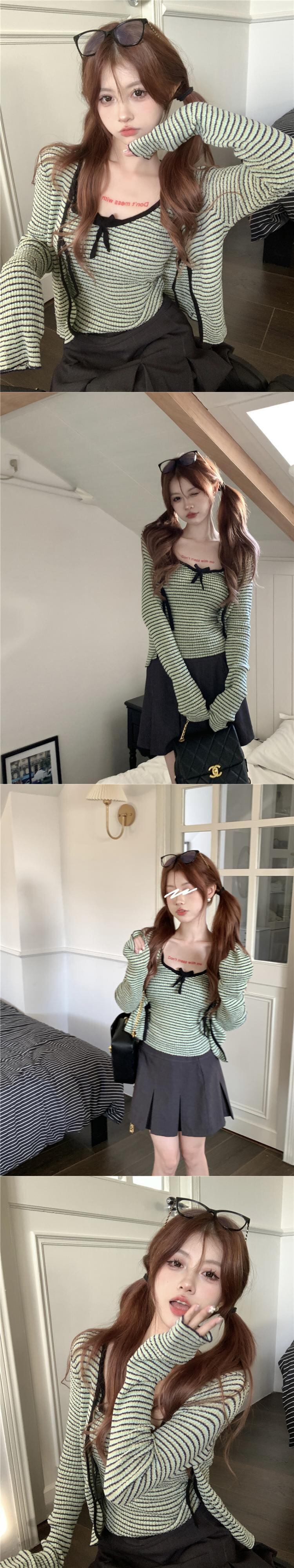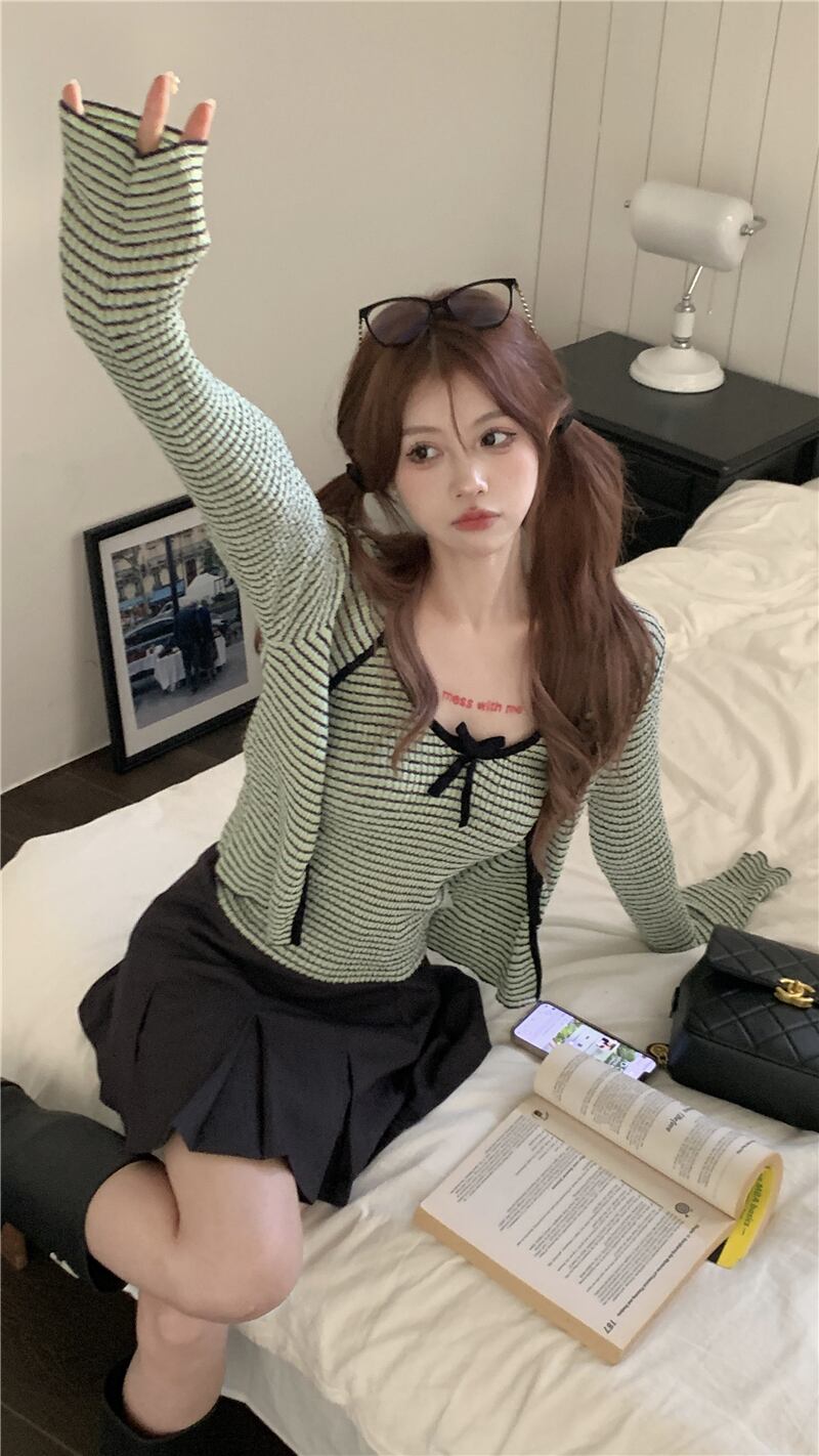オータムストライプカーディガントップス スリムショートセット 秋物 10/5 秋冬 オータム ウインター ナチュラル mi4630312575472