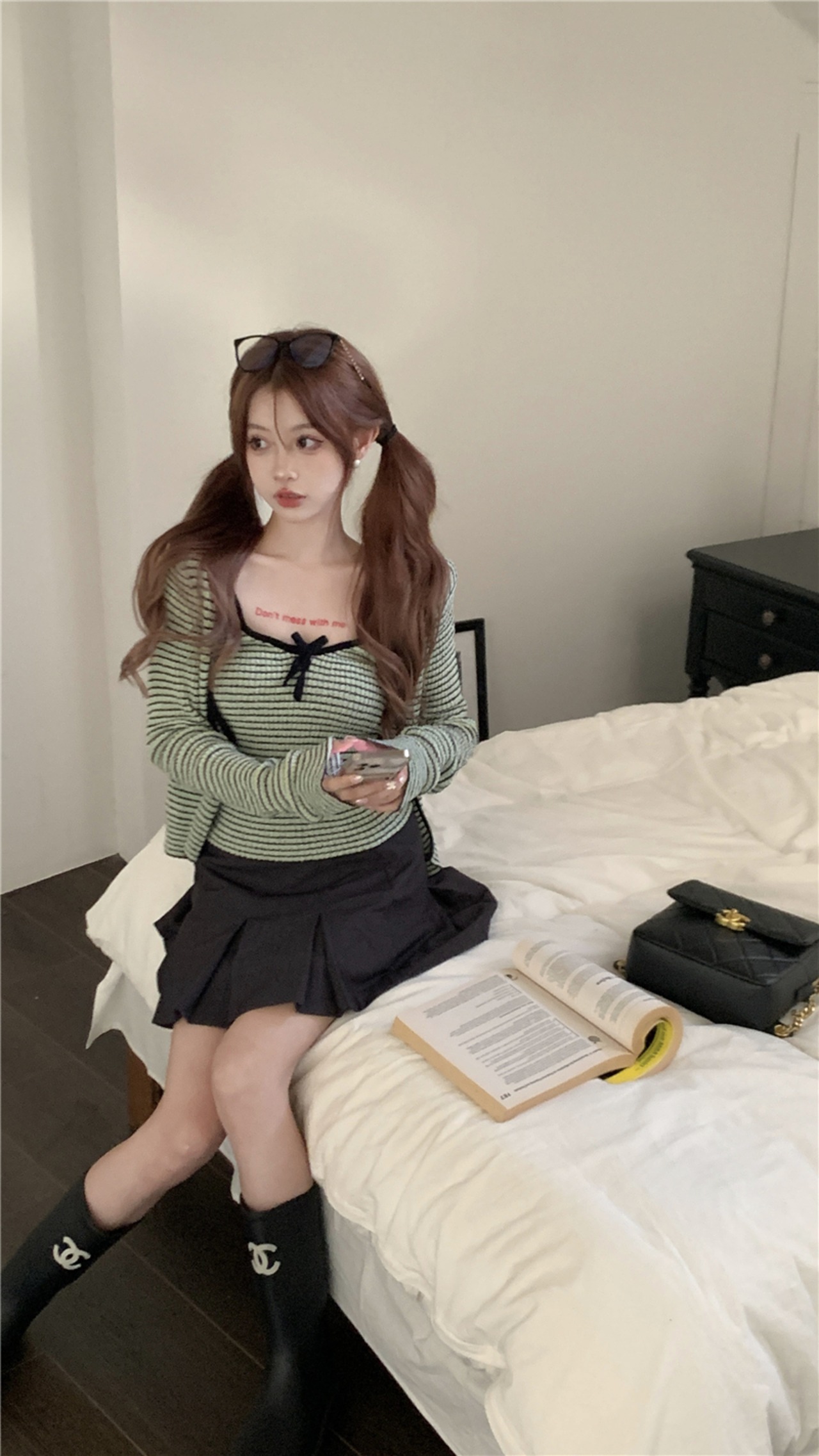 オータムストライプカーディガントップス スリムショートセット 秋物 10/5 秋冬 オータム ウインター ナチュラル mi4630312575472